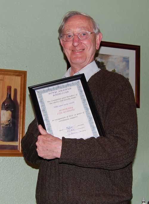 After the dinner, Mike, 'DWX, longest serving member of the club, and his long suffering XYL Judy, were awarded Honorary Life Membership.